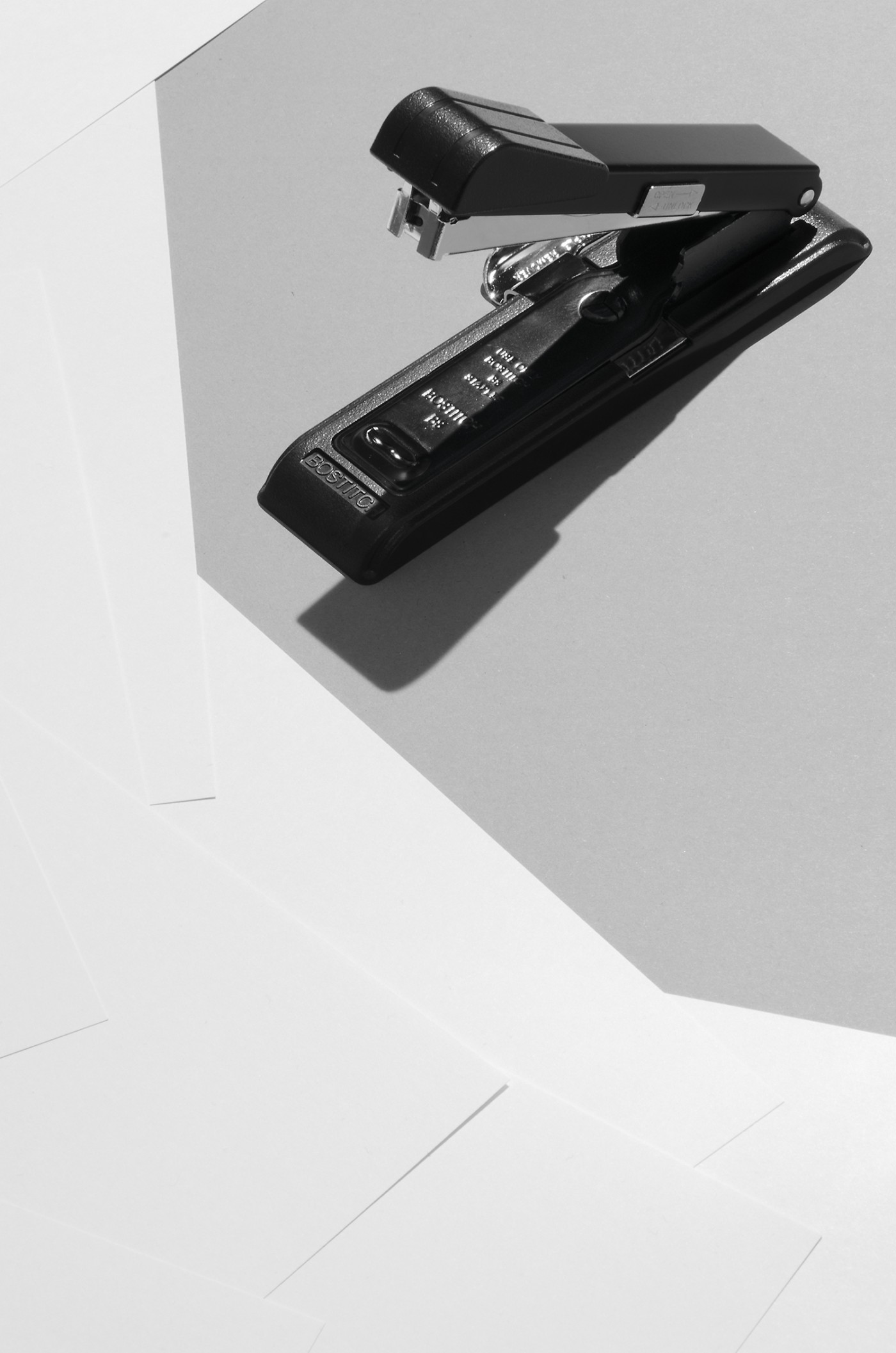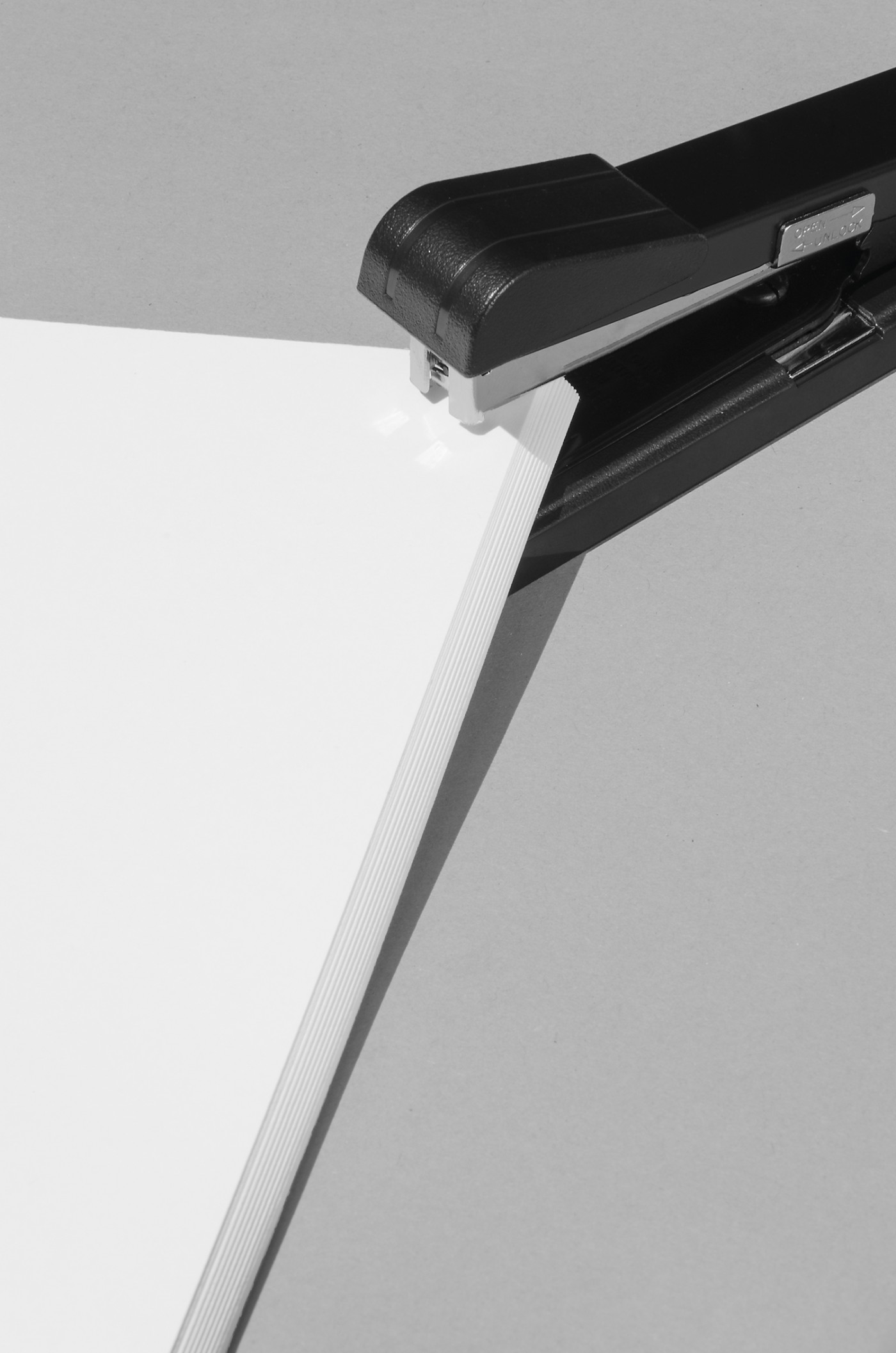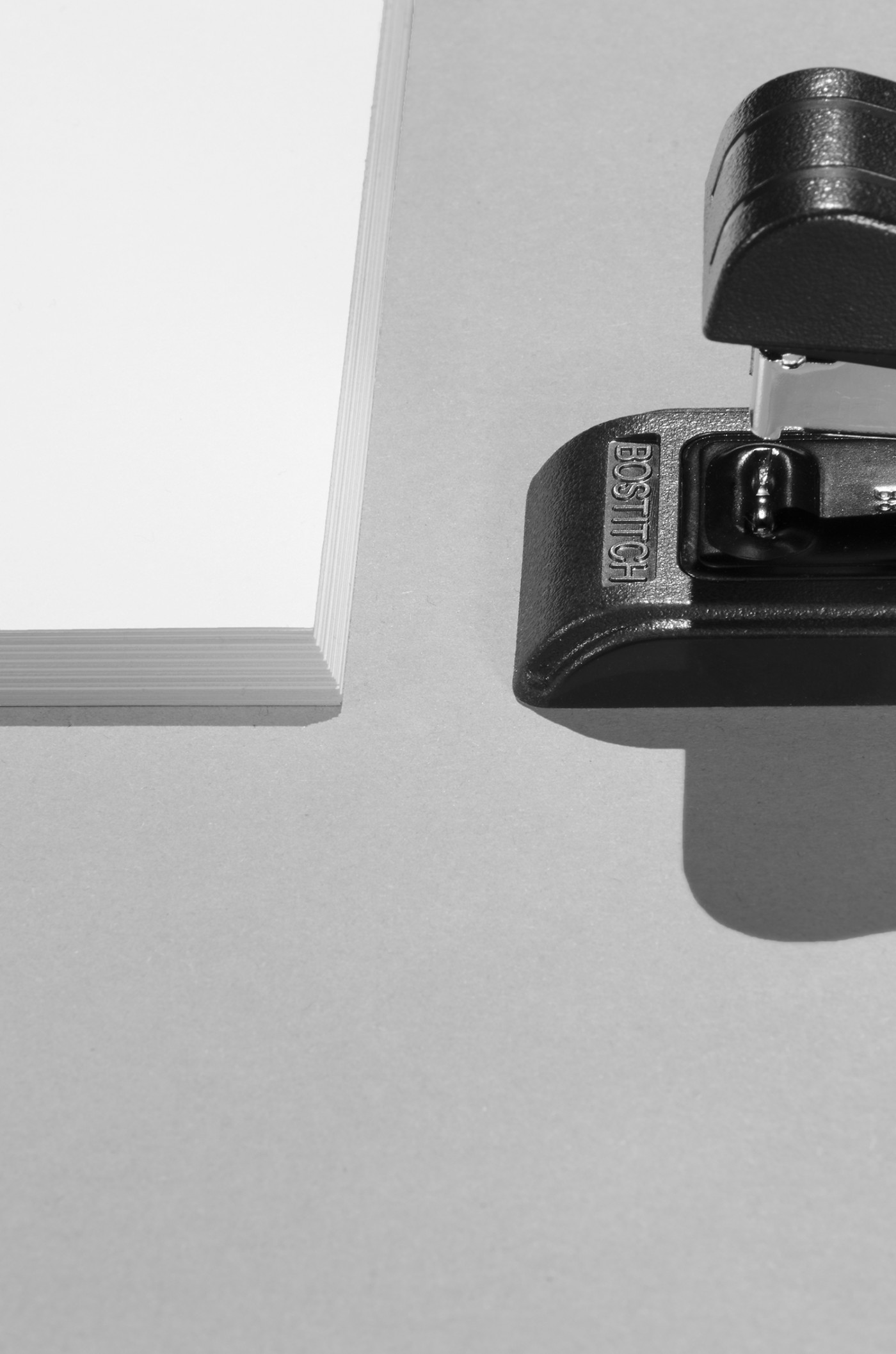 Eine Fotostory für ein Editorial zum Thema Teambildung in einem fiktiven Magazin. Umgesetzt mit einem original Bostitch und weissen Blättern.